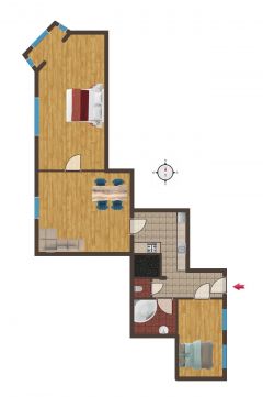 * Szobák: nappali + 2 külön nyíló hálószoba