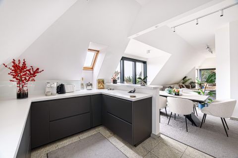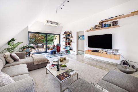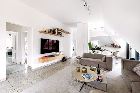 A terek karakterét egyedileg válogatott designer bútorok és lámpák határozzák meg, többek között Boconcept ülőgarnitúrával.