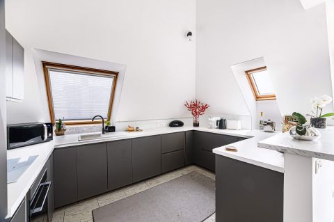 Az ingatlan három jól szeparált hálószobával, egy kényelmes fürdőszobával, egy külön vendégmosdóval, egy praktikus gardróbbal és elegáns előtérrel rendelkezik. A lodzsa és a terasz tovább növelik a terek nyitottságát, így a lakás elrendezése harmonikusan ötvözi a funkcionalitást és az otthonosságot.