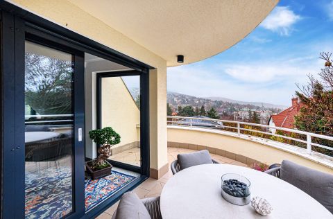 Eladó egy 122 m²-es, panorámás, fényárban úszó, dupla teraszos, 3 hálószobás, nagy fürdőszobás otthon a 2. kerület egyik legkeresettebb, zöldövezeti részén kiváló elrendezéssel és frissen felújított, prémium belső terekkel.