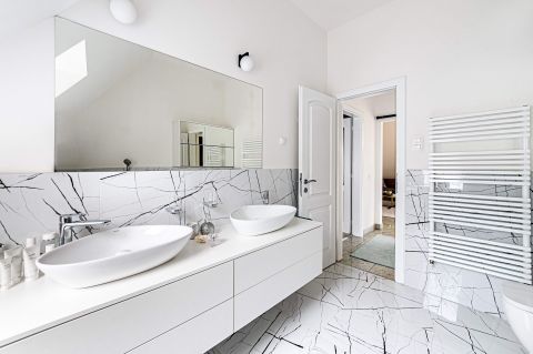 A Bosch beépített gépekkel felszerelt konyha és a prémium Hansgrohe, Arezzo, Marmy, valamint Novabell márkák használata a minőségi életérzést szolgálják.
