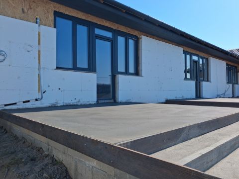 Tető: Antracit Terrán beton cserép, alumínium ereszcsatorna.