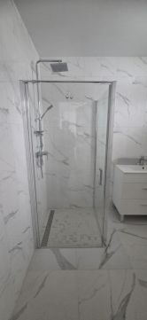 Elosztását tekintve: előszoba, wc, közlekedő, fürdő, 2 szoba, amerikai konyhás nappali, terasz