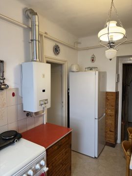 A lakás a 3. emeleten található (legfelső szint, nincs lift), keleti fekvésű, így csendes, mert nem a villamos felé néz. Fűtése gázkonvektor, a melegvizet gázbojler adja, állapota közepes, így saját ízlés szerint alakítható, felújításra kiváló alap.