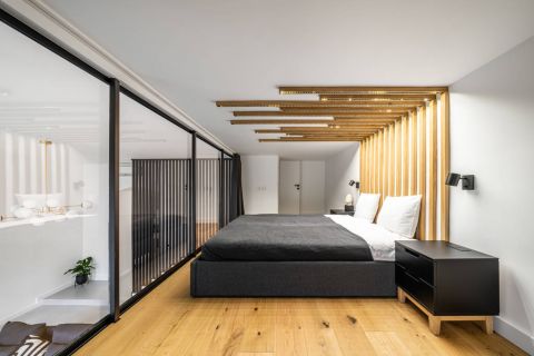 The apartment has a total area of 106 sqm, complemented by an 18 sqm mezzanine that functions as an additional bedroom.