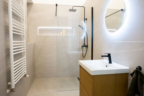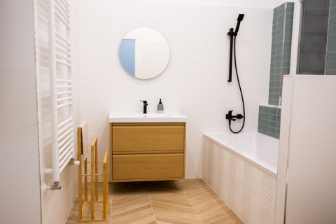 A színek, burkolatok és berendezések tudatos választás eredményei: klasszikus elegancia, modern arányérzék, időtálló stílus.