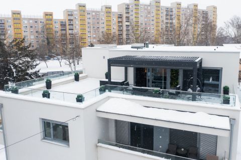 Az ingatlan déli fekvésű, bruttó 68 m² alapterülettel rendelkezik, melyhez egy 90 m²-es, napfényes tetőterasz kapcsolódik, lenyűgöző, akadálytalan panorámával. A lakás kiváló benapozottságú, egész nap világos, nagy üvegfelületeinek köszönhetően.