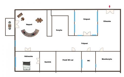 külön háztartási helyiség (mosógéppel, beépített szekrényekkel)
