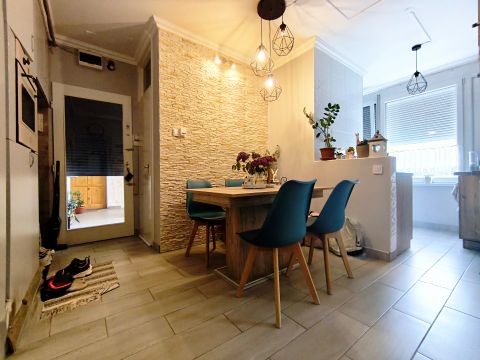 A lakás felújítása során megújultak a víz- és villanyvezetékek, új műanyag nyílászárók kerültek beépítésre, valamint a hideg- és melegburkolatok is cserélve lettek. A praktikus átalakításnak köszönhetően minden helyiség jól kihasznált, a lakás otthonos és élhető tereket biztosít.
