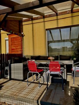 Ytong téglából épült, cserép fedéssel, nyílászárói már műanyagok, szigeteltek.