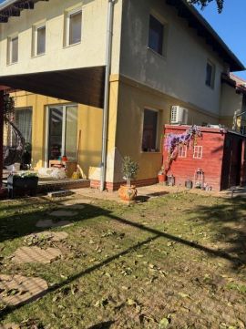 Kapun belépve saját használatú kertbe jutunk, melynek nagysága 180nm, itt helyett kapott egy kis kerti tároló, sütőgető kiülő  terasszal, mely családi és baráti események helyszíne lehet. Itt lehetőség van még egy autóbeálló kialakítására is, bár a ház előtti terület ennek a célnak tökéletesen megfelel.