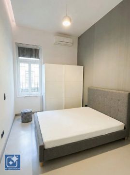 The property is located on the 4th floor and offers 120 sqm according to the title deed (125 sqm in reality) with an impressive ceiling height of 3.7 meters, creating a spacious and elegant atmosphere.