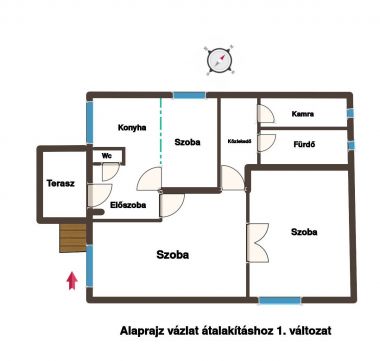 A lakás a három albetétes családi ház alsó szintjén található. Jelenlegi beosztása szerint két szoba, konyha, étkező, fürdő, külön WC, előszoba és közlekedő helyiségekből áll. Az elvégzendő felújítás során további egy szoba kialakítható. A háznak ez a része az 1960-as években épült, külső szigetelése a kétezres évek elején megtörtént.
