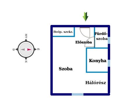 A lakás bútorozott, a jó helykihasználásnak köszönhetően praktikus, élhető otthon lehet egyedülállóknak.