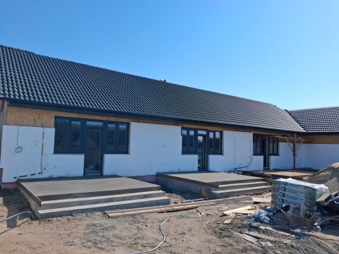 Tető: Antracit Terrán beton cserép, alumínium ereszcsatorna.