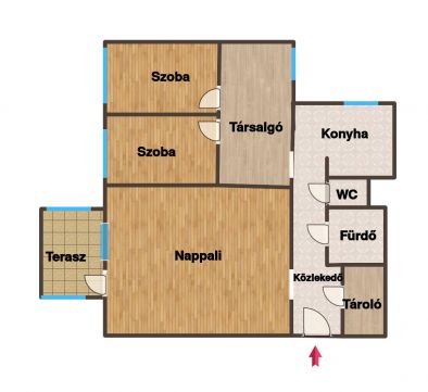 A lakás napfényes, csendes és tágas elrendezése három külön nyíló szobássá alakítható, így egy család számára is ideális otthon lehet. A tágas nappali mellett külön konyha és gardrób is található, amely növeli a kényelmet és a funkcionalitást.