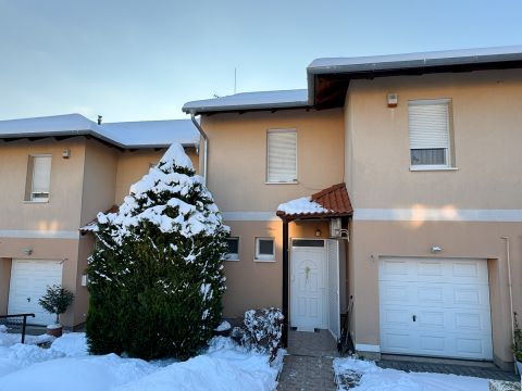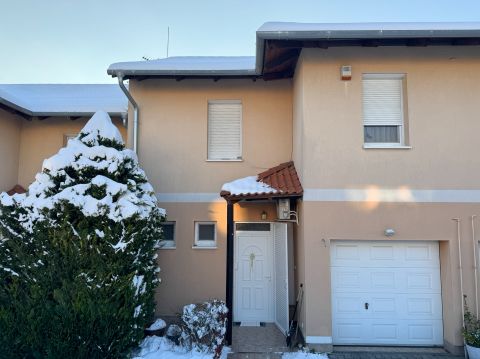 A lakáshoz tartozó garázson kívül egy autó számára kerítésen belüli beálló, egy további autónak pedig az elektromos kapu előtt biztosított a helye.