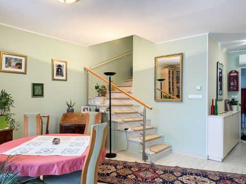 Elektromos redőnyök, beépített szúnyoghálók és egy, a lakásból közvetlenül elérhető garázs teszi kényelmessé a mindennapokat. A lakás riasztórendszerrel szerelt.