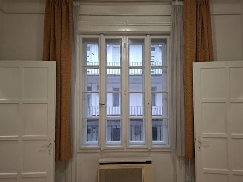 A lakás déli fekvésű, belső udvarra néz, így a központi elhelyezkedés ellenére kifejezetten csendes és nyugodt.