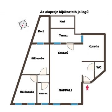 A lakás fűtését gáz-cirkó fűtőberendezés biztosítja, a nyílászárók fából készültek.