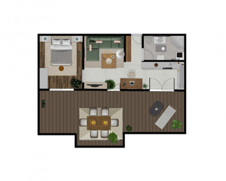 - Jelenleg egy légterű, de könnyedén leválasztható egy külön hálórész, így a lakás még praktikusabbá és otthonosabbá tehető.