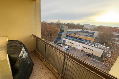A lakáshoz tartozó erkély kellemes helyszínt nyújt egy reggeli kávéhoz vagy esti pihenéshez.