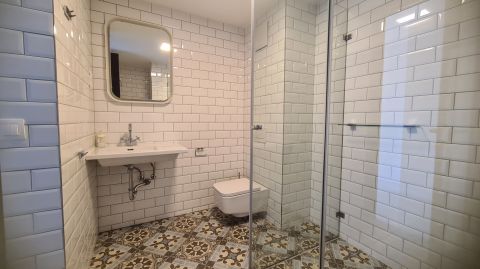 A lakásban megtalálható egy amerikai konyhás nappali, egy hálószoba, egy fürdőszoba tusolóval, és három beépített szekrény.