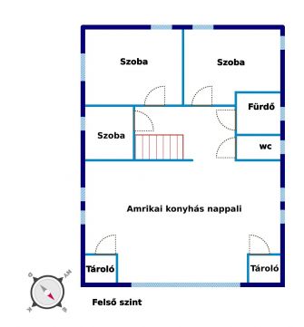 3 szoba + amerikai konyhás nappali + fürdőszoba +  külön WC