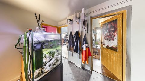 A lakáshoz tartozik még a szuterén szinten egy 40 nm-es garázs és mögötte egy 18 nm-es tároló ahol a gépészet is helyet kapott.