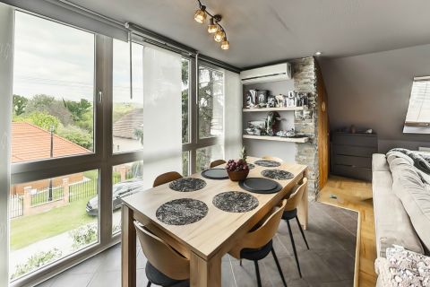 ELADÓ EGY EMELETI, 95 NM LAKÁS, GARÁZZSAL, TÁROLÓVAL ÉS ZÖLD KERTTEL!
