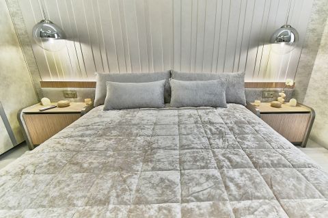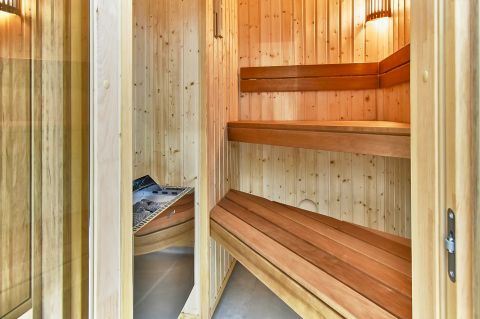 Extrák: egyedi, gépesített konyha, beépített szauna és masszázskád, okos világítás, központi stand by rendszer, riasztó, széf, valamint saját házimozi projektorral és 5.1 hangrendszerrel.