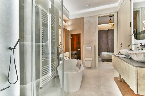 Exkluzív, egyedileg gyártott bútorok és fa ajtók, igényes, stílusos belső az egész lakás egy valódi prémium életérzést ad.