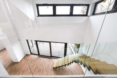 Üvegkorlátos, exkluzív lépcső és átrium
