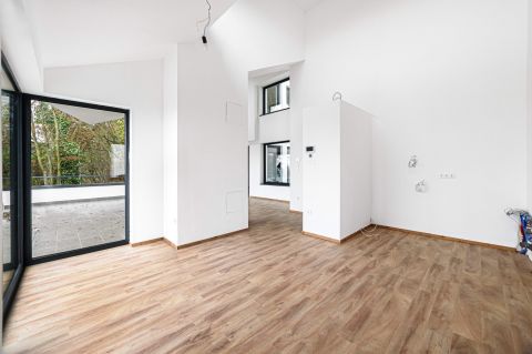 Az alsó szinten tágas nappalikonyha, hálószoba, gardrób, fürdőszoba és három külön terasz található. A felső szint egy szeparált hálót, gardróbot és fürdőszobát kínál. A galériás háló külön látványossága a nagyméretű üvegfal, amelyről az egész lakótér rálátható modern, karakteres és igazán egyedi építészeti elem.
