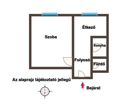 Helyiségek: tágas szoba, konyha étkezővel, fürdőszoba