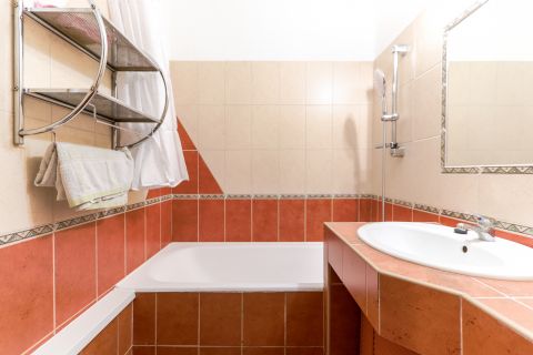 A fürdőszoba és a konyha pár éve teljes felújításon esett át, mediterrán stílusú burkolatokkal és színekkel, így a lakás meleg, otthonos hangulatot áraszt.