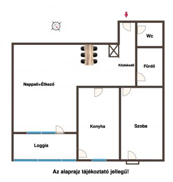49 m² lakás + 6 m² loggia (összesen 52 m² hasznos alapterület)