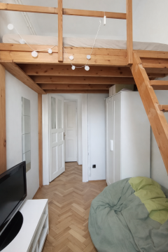 1075 Budapest 7. kerület Király utcában 42 m2-es +10 m2 -es galériás gyönyörűen berendezett, világos 1. emeleti 2 szobás laká