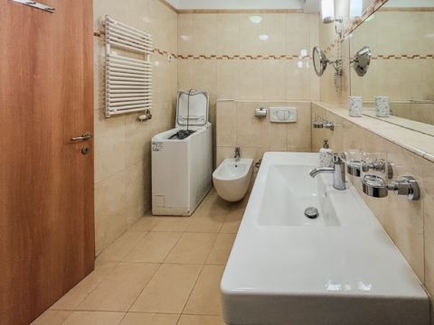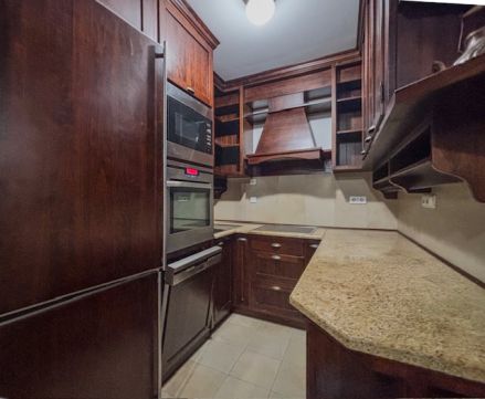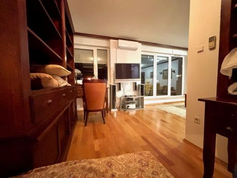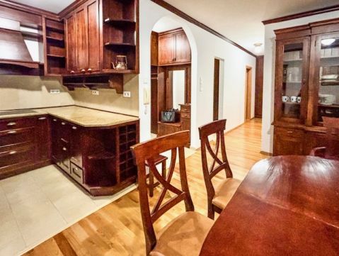 A lakás teljesen berendezett, a gardróbszobában igényes beépített szekrény, a konyhában egyedi konyhabútor, AEG konyhai gépekkel.