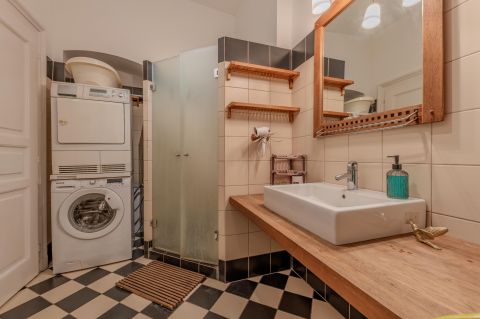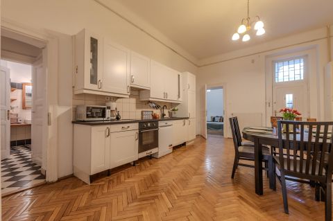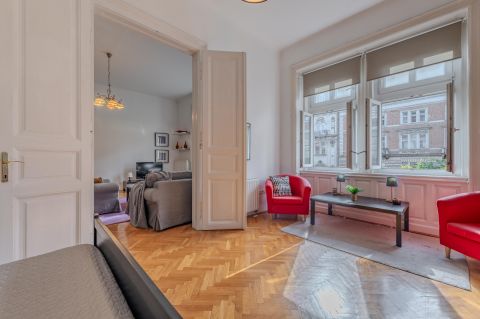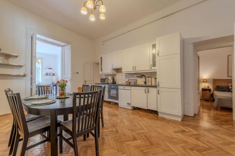 A rare opportunity to purchase a high-ceiling, stately apartment on one of Budapest's most prominent boulevards, Teréz körút. This property is not just a home; it's an immediately profitable, established short-term rental business with incredible future development potential!