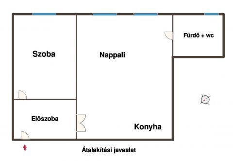 - Elrendezés: Tágas szoba, külön konyha, valamint fürdőszoba. Igény esetén könnyedén amerikai konyhás nappali + hálószobás lakássá alakítható.