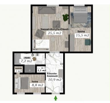 • Világos, 1. emeleti, 70 m²-es, téglaépítésű lakás eladó amerikai konyhás nappalival, + 2 külön szobával, az egyikhez 1 m2-es gardrób tartozik.