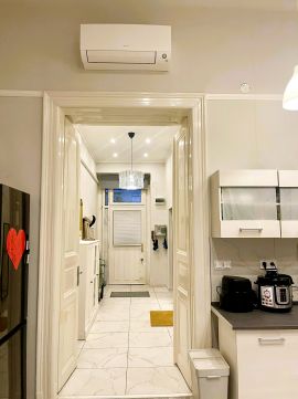• A lakás modern, klímás, vezeték nélküli termosztáttal irányítható fűtésrendszerrel, gáz cirkóval és gépesített konyhával felszerelt.
