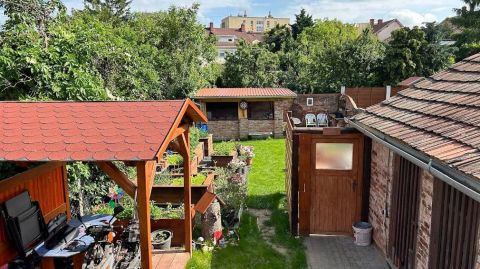 Az ingatlanhoz tartozik egy kb. 150 négyzetméteres saját kertrész, ami intim környezetben biztosítja a medencézni kívánó emberek pihenését. A tavalyi év során egy 26 négyzetméteres fedett kerti terasz valósult meg, ahol a barátainkat láthatjuk vendégül. A zöld rész mellett magaságyásban lehet a friss zöldségeket megtermelni.