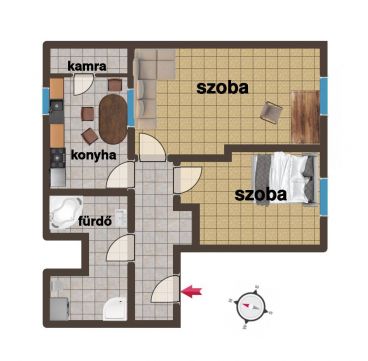 A szobák külön bejáratúak, a belmagasságuk 3,3 m, a kisebb szobában egy kis galéria is kialakításra került.