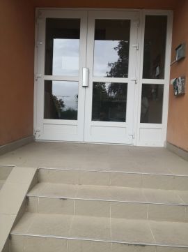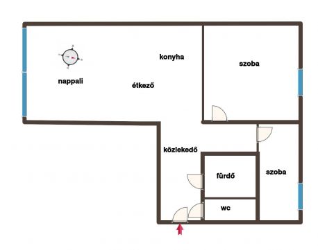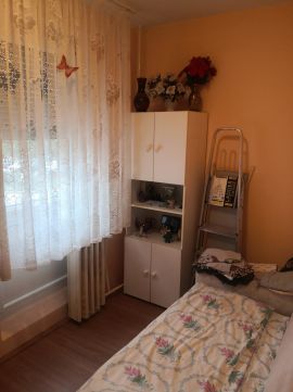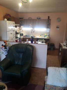 A szigetelt épületben lévő, amerikai konyha-nappali + két szobás, műanyag nyílászárós, klímával szerelt lakás. A nagyobbik 24 m2-es szoba lett átalakítva nappali + konyhává, az eredeti konyhából szoba lett.