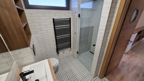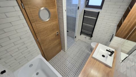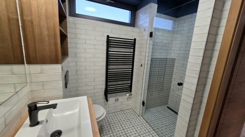 Az emeleti részen 3 szoba, dupla fürdő, melyekben wc, tusoló és kád is beépítésre került.