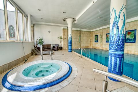 - wellness részleg: fűtött úszómedence, gőzkabin, szaunák, konditerem, squash pálya, sóbarlang
