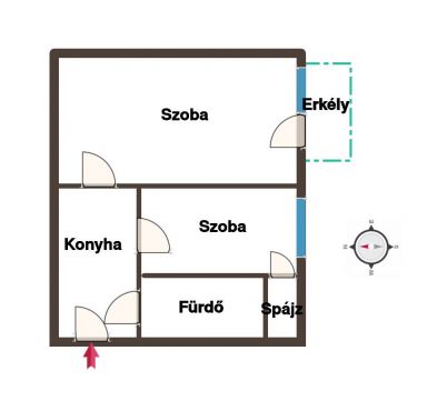 Az ingatlan áll ~ 1 szoba, 1 félszoba, fürdő wc-vel, spájz, előszoba - konyha, erkély helyiségekből.