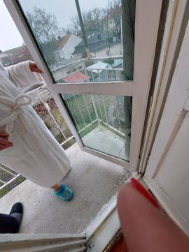 A lakás déli fekvésű, az ablakok és az erkély az udvarra néznek.